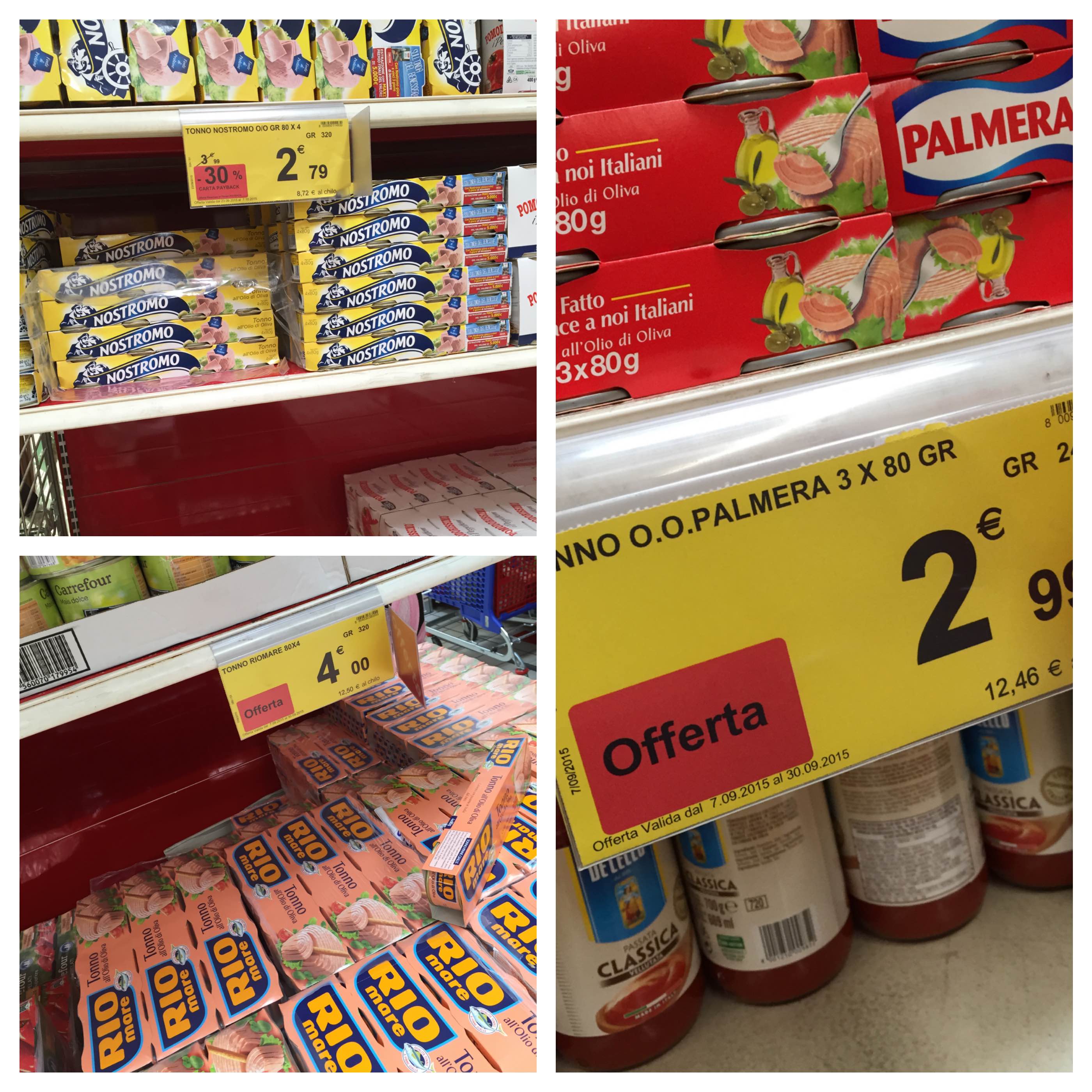 Vediamo questa foto. Un sabato pomeriggio in un ipermercato. Alla ricerca di scatolette di tonno incontro a poca distanza l’una dall’altra 3 offerte per formati identici o comunque simili!? Eppoi vorremmo misurare l’efficacia della leva promozionale!? Perlomeno dovremmo evitare scelte di auto-cannibalizzazione tra identiche offerte che nulla aggiungono al Cliente (tre proposte per rispondere sempre al medesimo bisogno!) e inficiano gli sforzi di marginalità di Industria e Distributore.